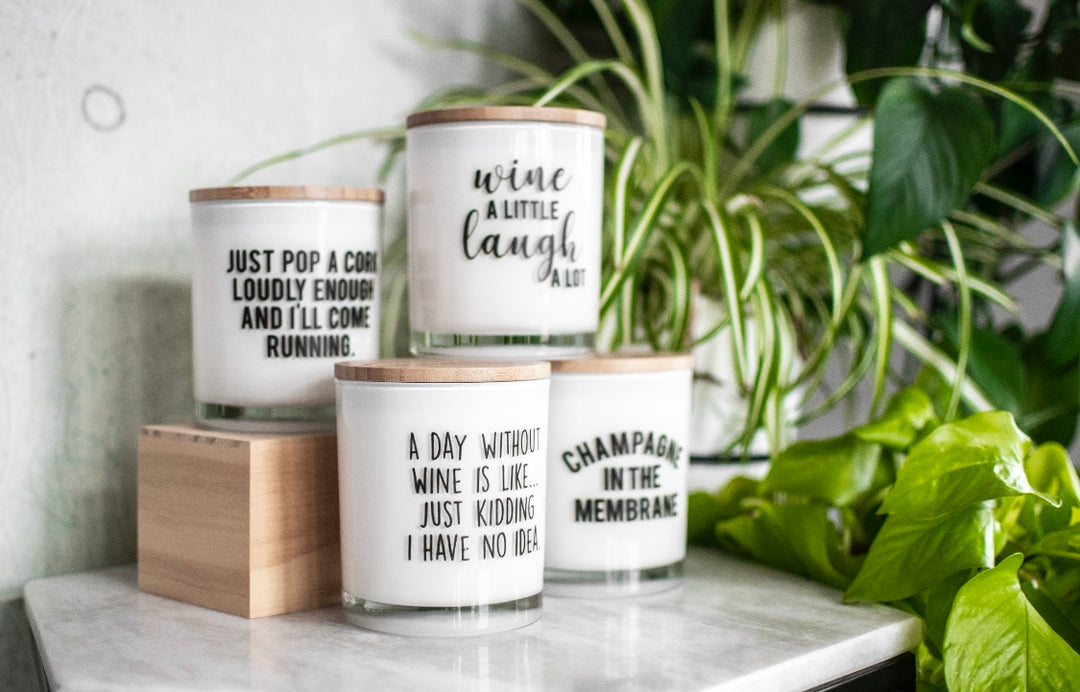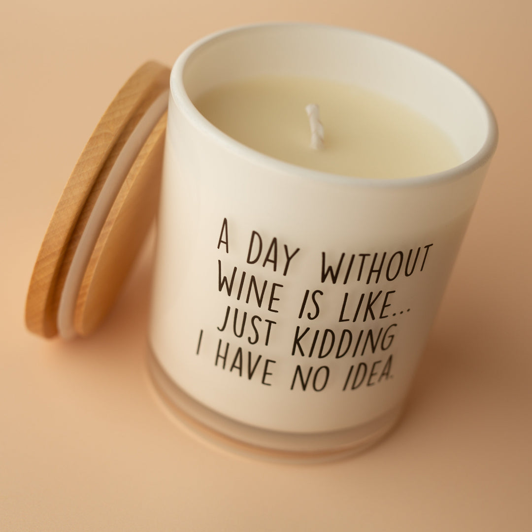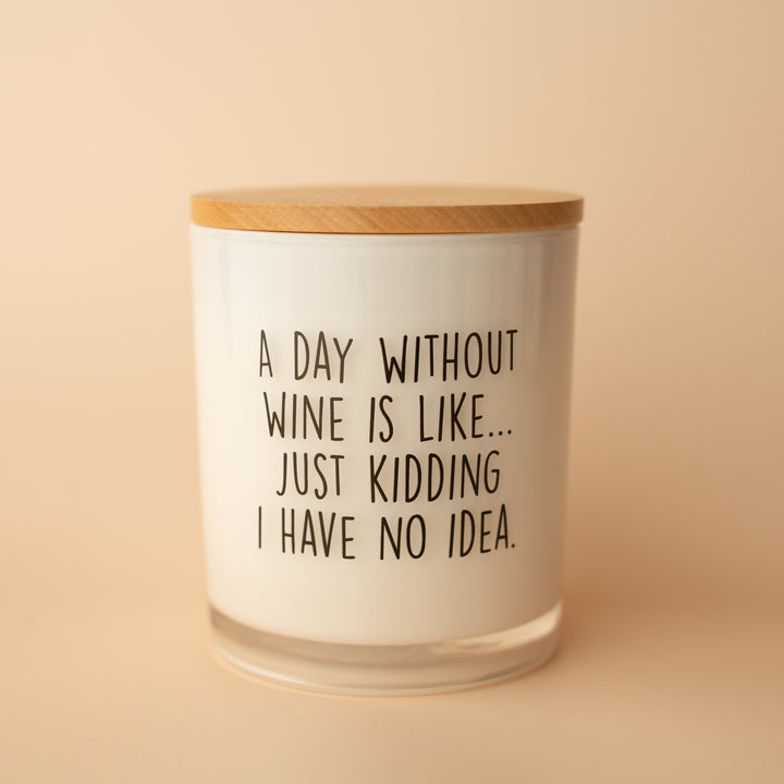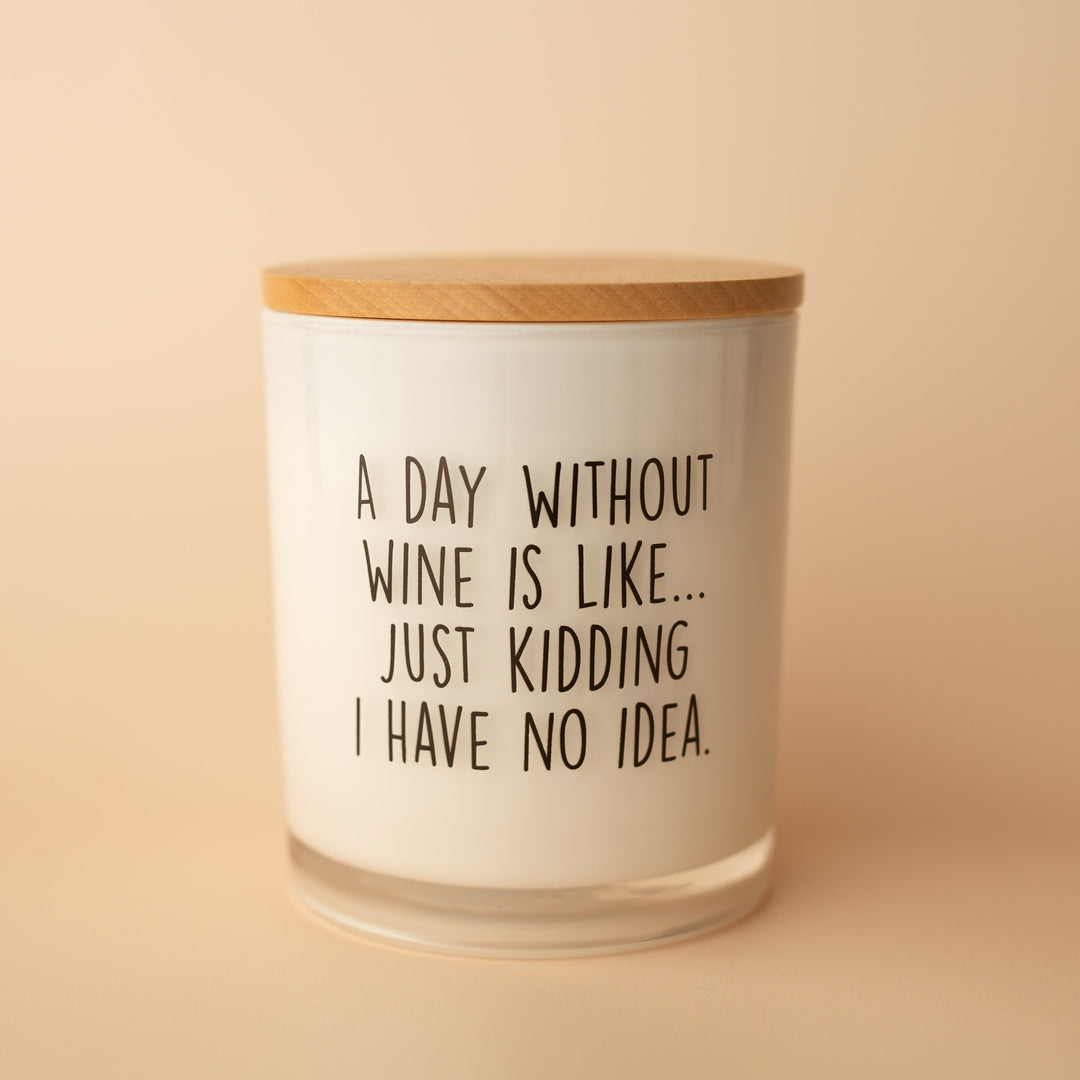 This printed candle reads "A day without wine is like... just kidding I have no idea." Only wine enthusiasts will understand why this printed candle is so perfect. This is the perfect printed candle for yourself, a hostess or whoever enjoys wine in general!