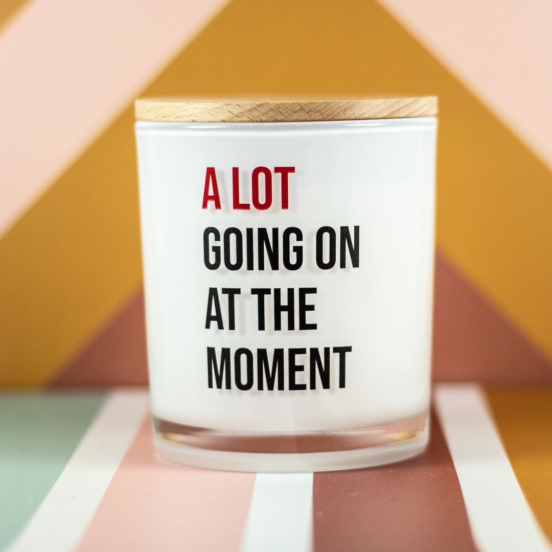 Introducing our "A Lot Going On At The Moment" candle, inspired by Taylor Swift's iconic phrase. Let the warm glow of this candle illuminate your space while capturing the essence of Taylor's wit and charm.