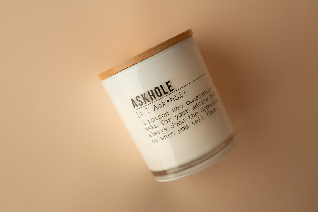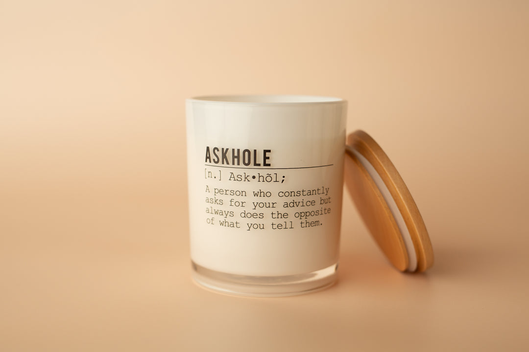 This candle is for the people who constantly want your advice but never take it. We refer to this person as an 'askhole'. Funny right? This is the perfect candle for that askhole in your life!