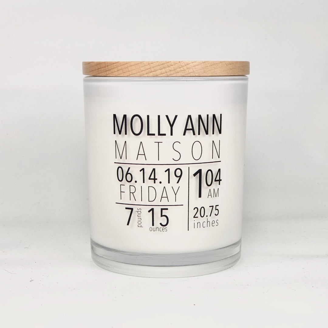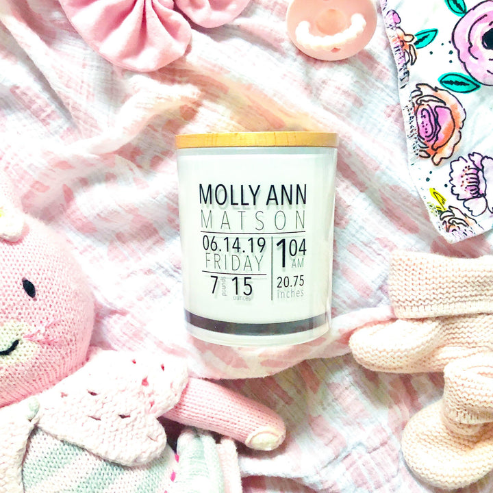The perfect new baby gift is here! Celebrate all the little ones in your life with a custom Baby Stats candle. New parents will love this keepsake!