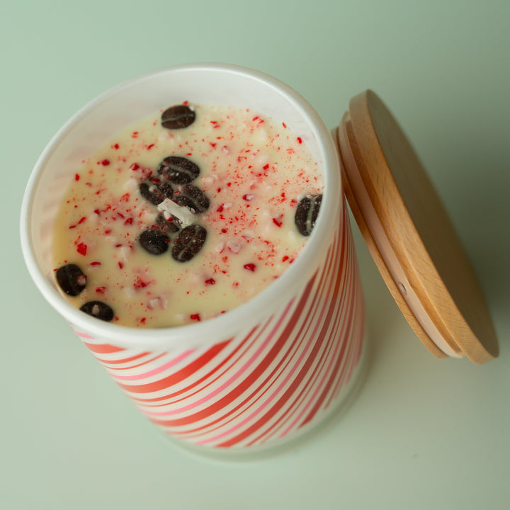 Experience the magic of the holidays with our Candy Cane Stripe candle.