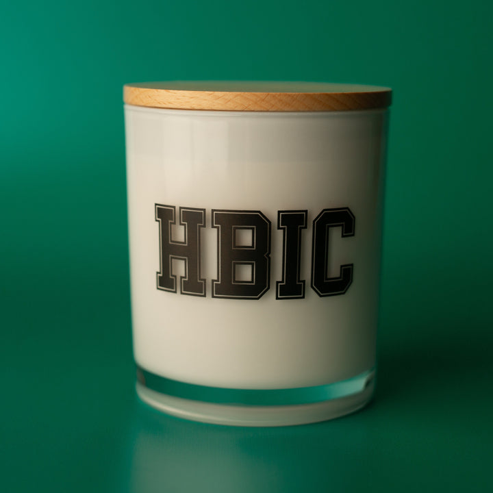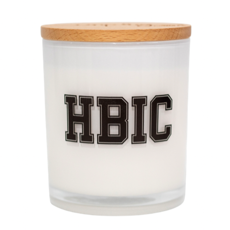 This printed candle reads "HBIC", and yes, we all know who the Head B In Charge is.