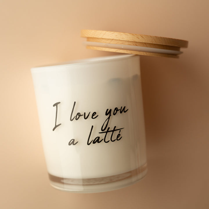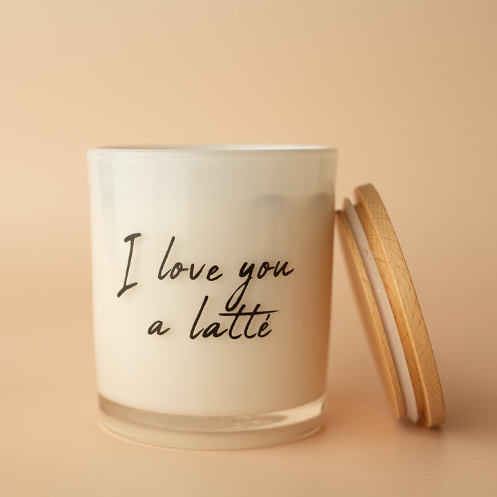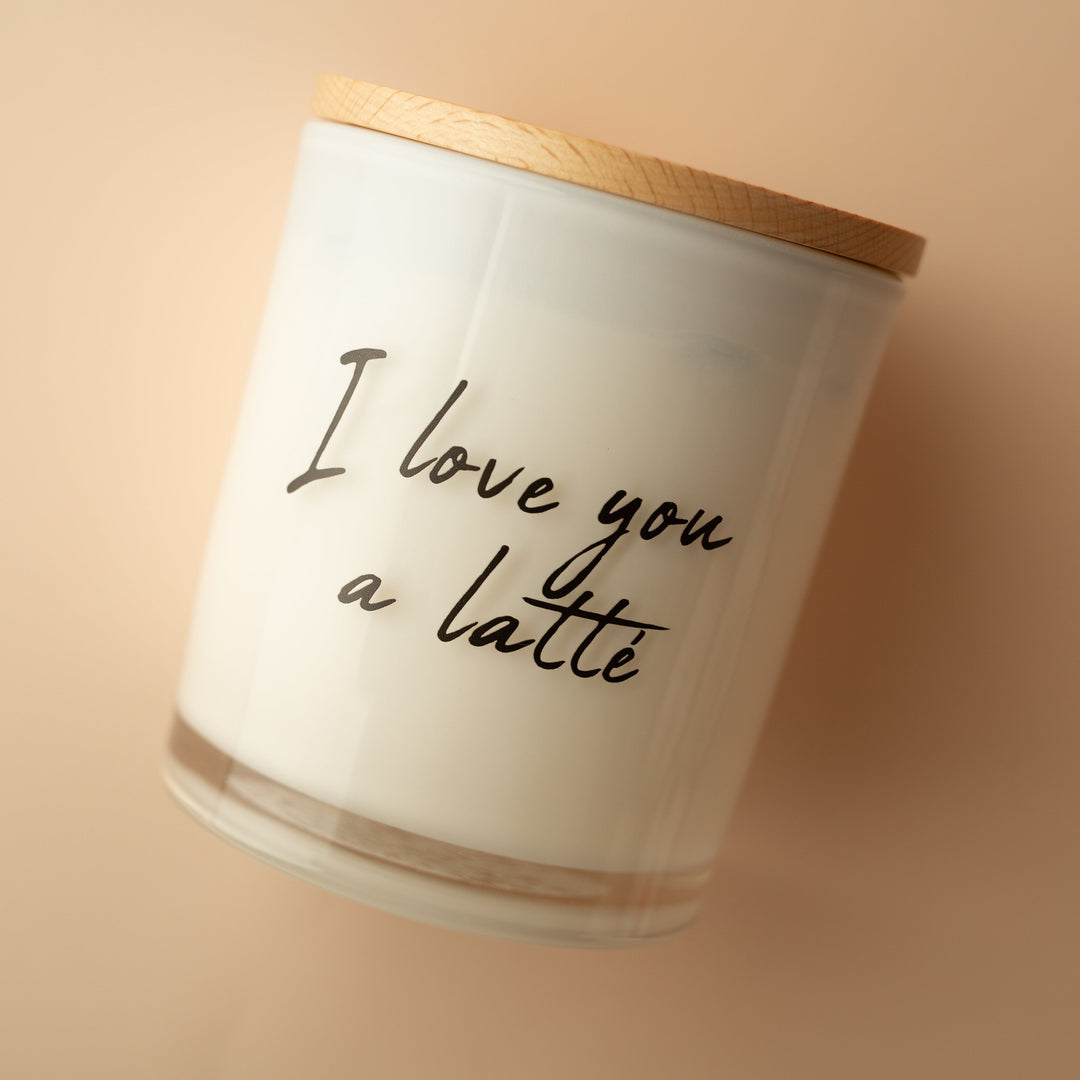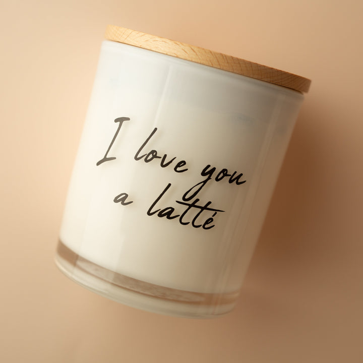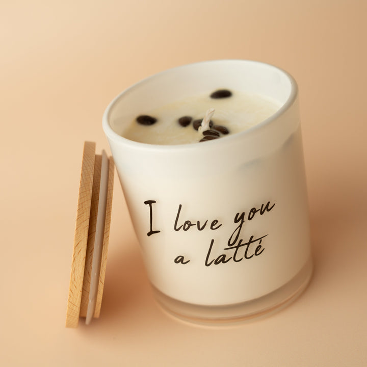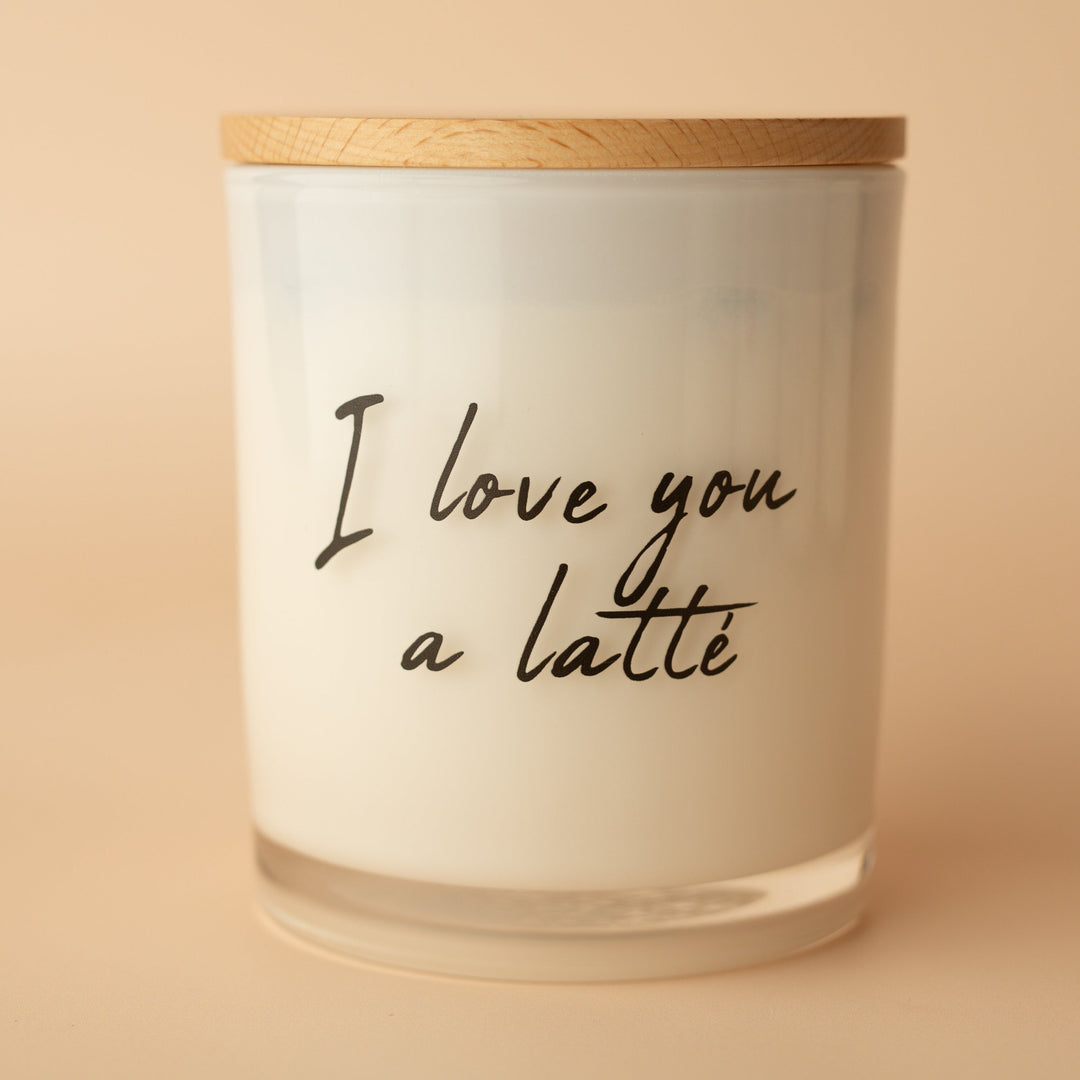 Our printed candle that includes a cute pun, "I love you a latte", is perfect for the coffee lovers in your life. Be sure to purchase in our Hazelnut Coffee, Pumpkin Spice Latte or Peppermint Mocha fragrances to include real coffee beans on the candle!
