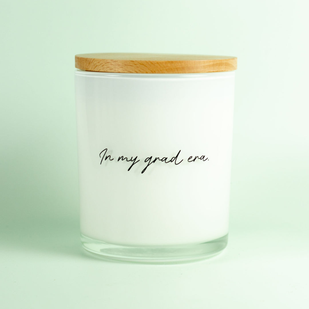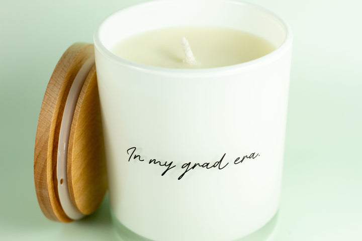 Because this is so your moment. Our In My Grad Era candle features a delicate cursive design that says it all—elegant, confident, and totally celebratory. It’s the perfect gift for the graduate who’s stepping into their next chapter with style and sparkle. Whether it’s displayed on a dorm shelf or lit during a well-deserved moment of relaxation, this candle captures the vibe of this unforgettable era.