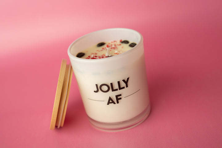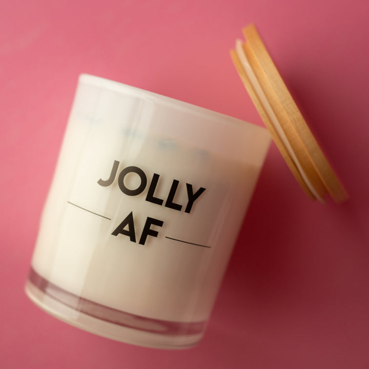This featured print is the definition of spicy and sweet. This print features block letters reading "Jolly AF" and will not only bring a good laugh, but also a delightful reaction.