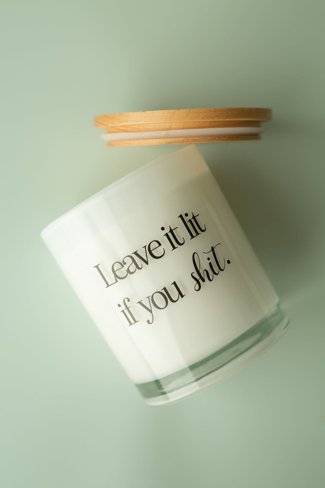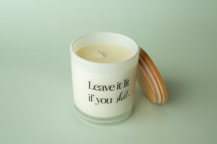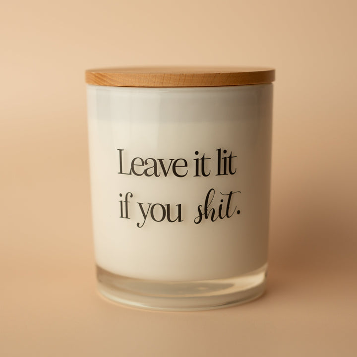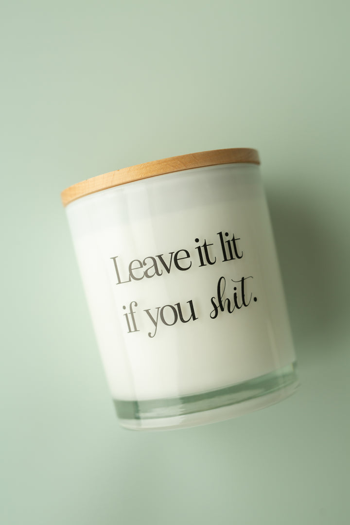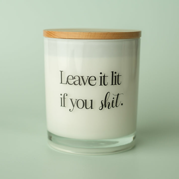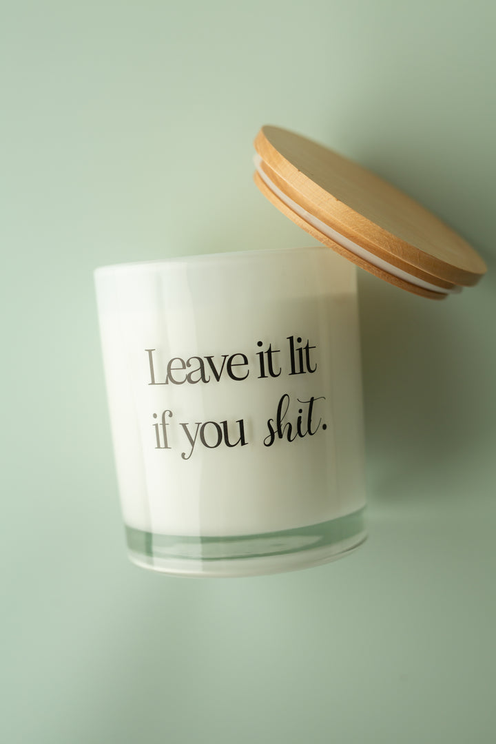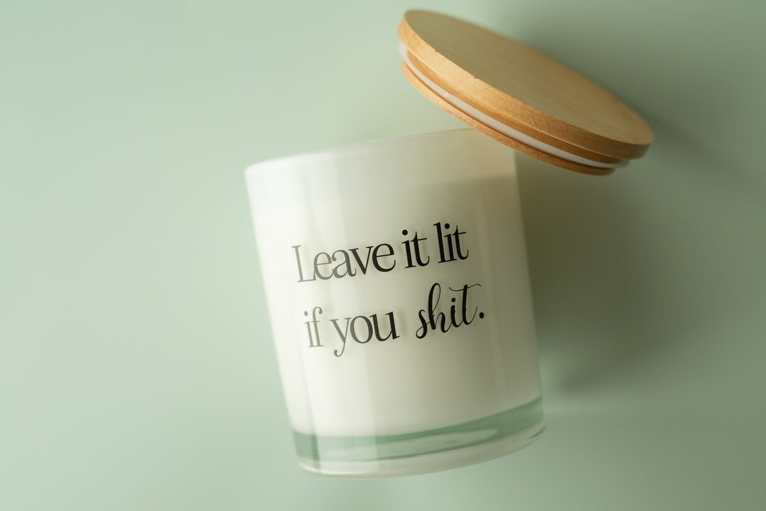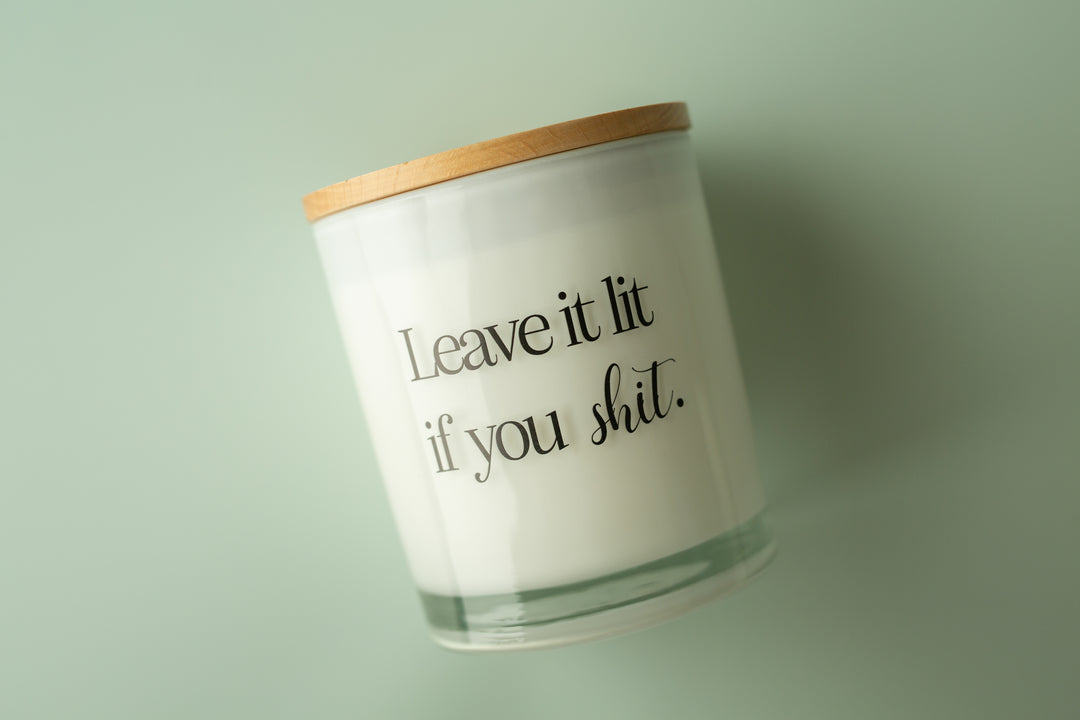 This hilarious bathroom printed candle reads "Leave it lit if you shit". This printed candle is perfect for anybody looking to add a little sauciness in their bathroom.