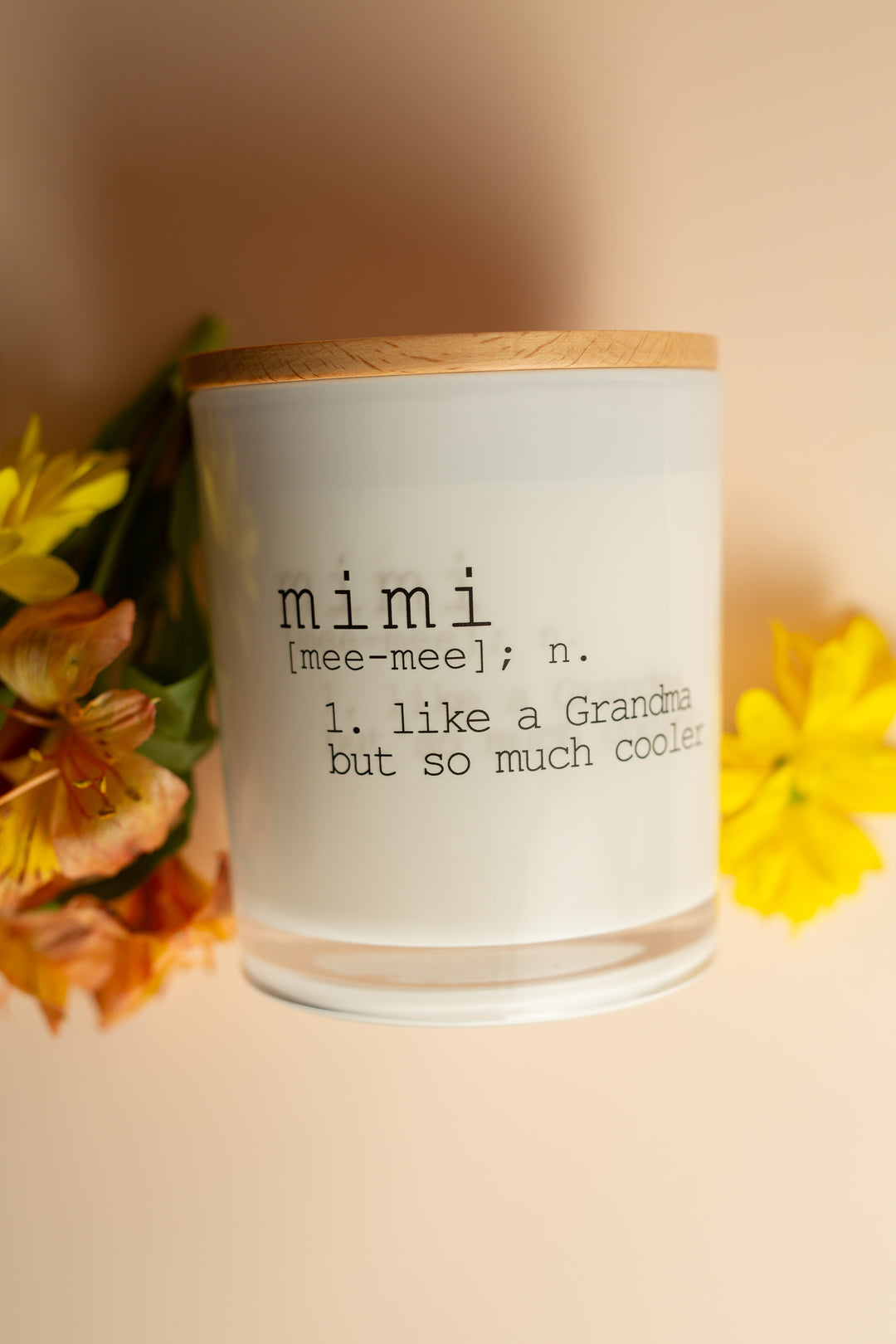 This printed candle is for all of the Mimi's out there! This Mimi Definition candle is perfect for any or all Mimi's because they are like a Grandma, but so much cooler!