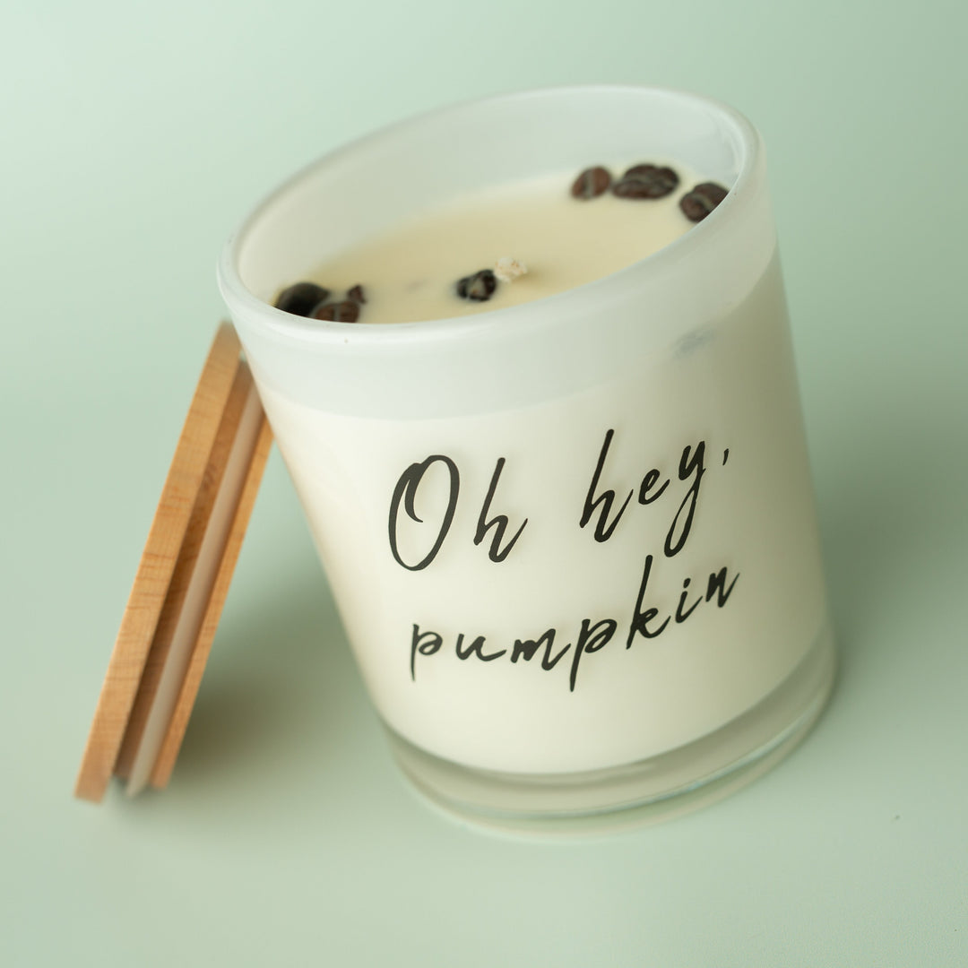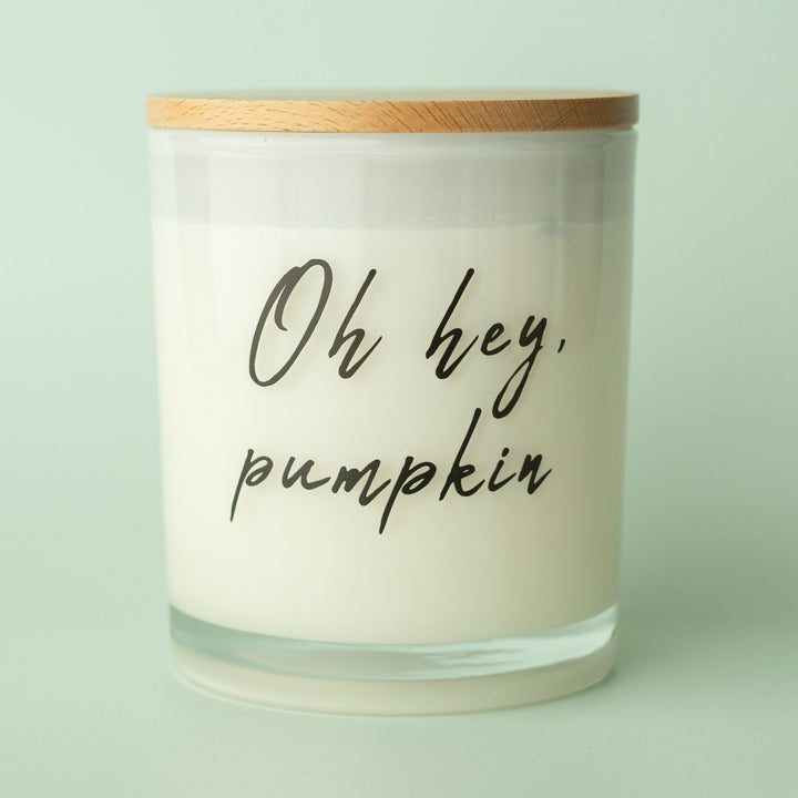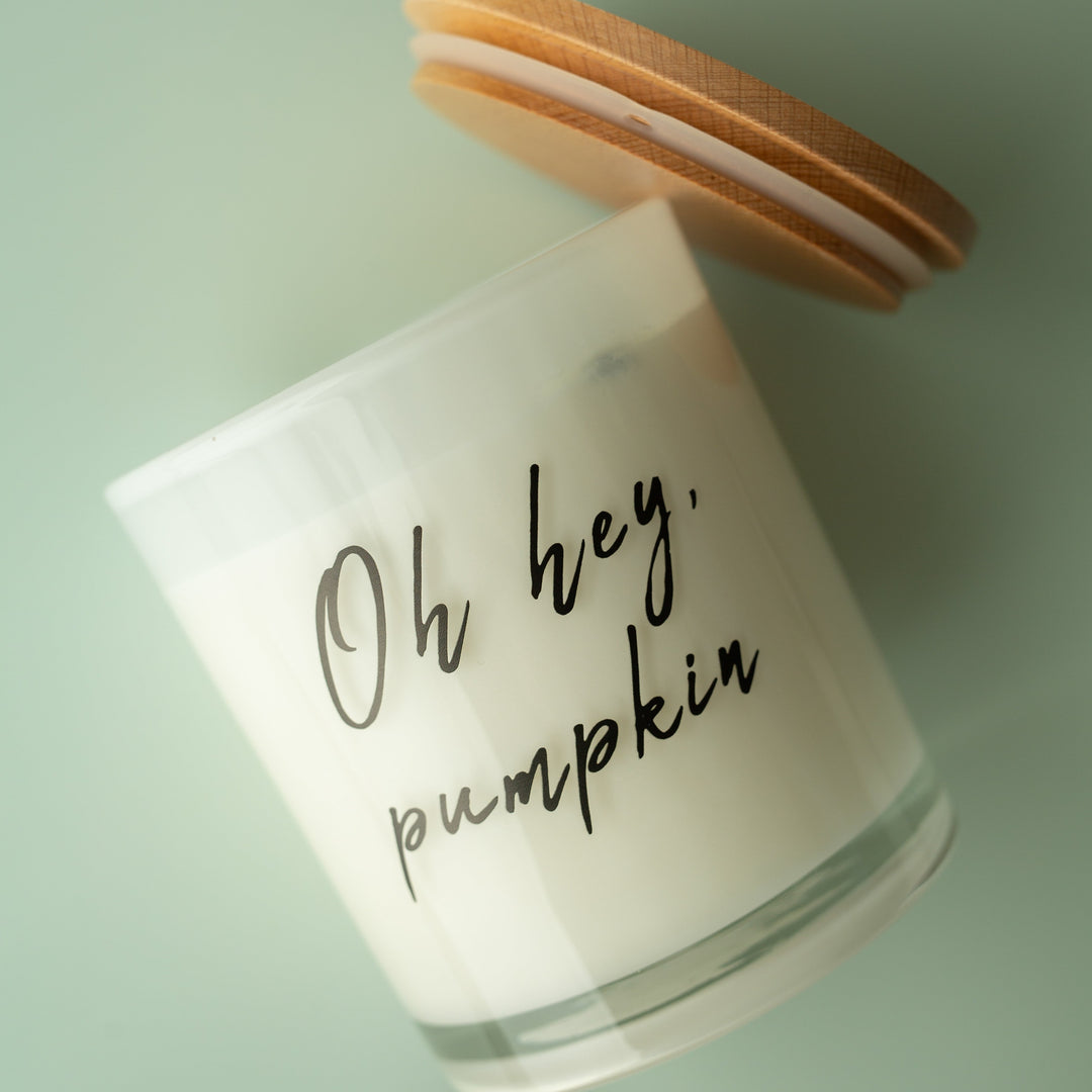 This sweet printed candle reads "Oh hey, pumpkin". This candle makes for the cutest centerpiece or feature in a house. Get this printed candle for you or a friend this fall!