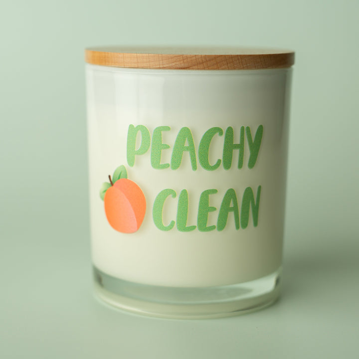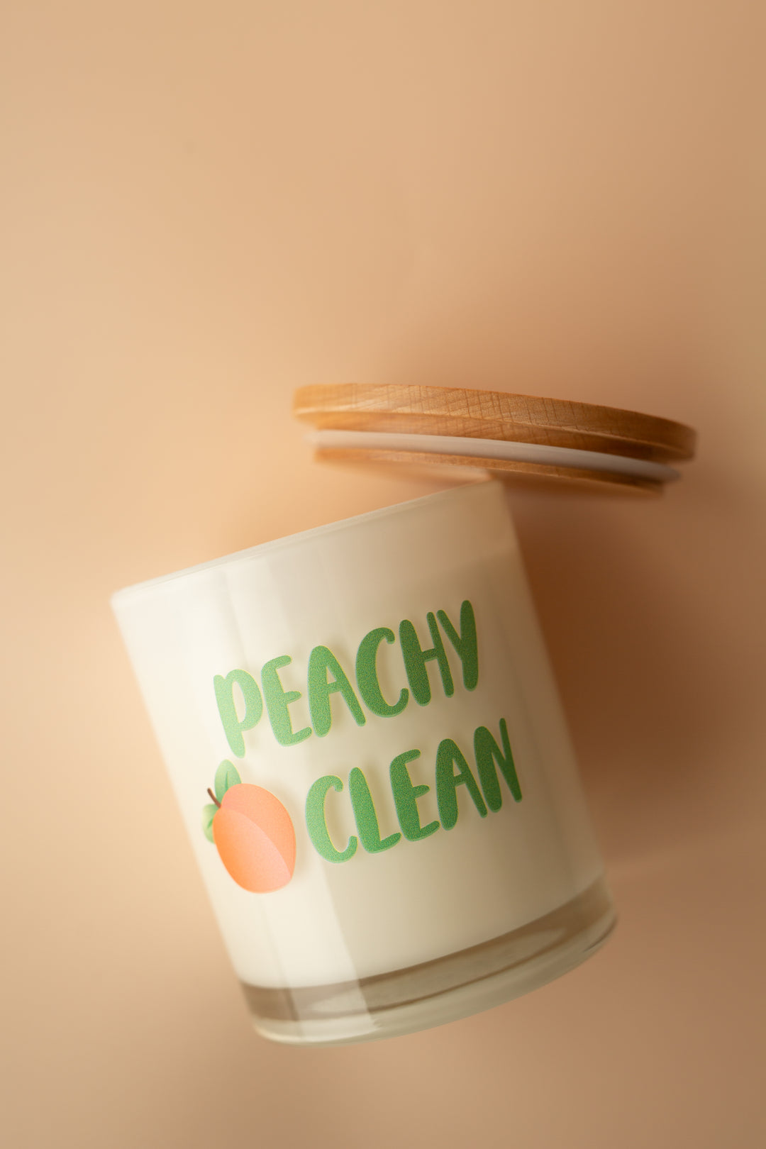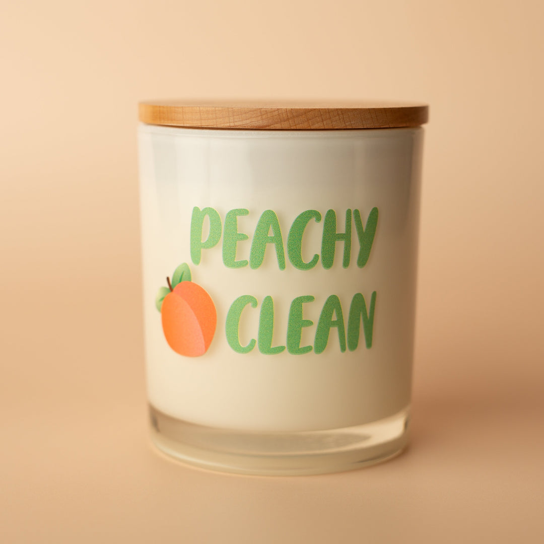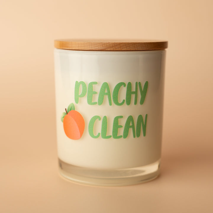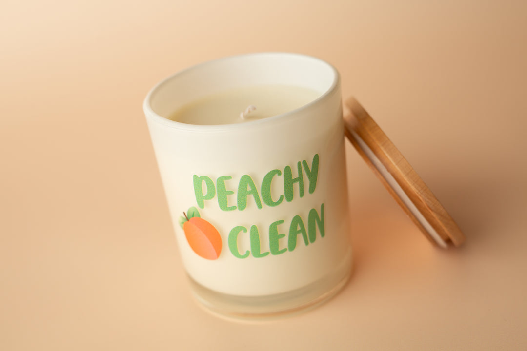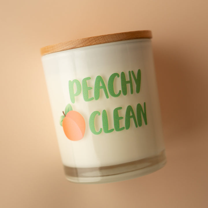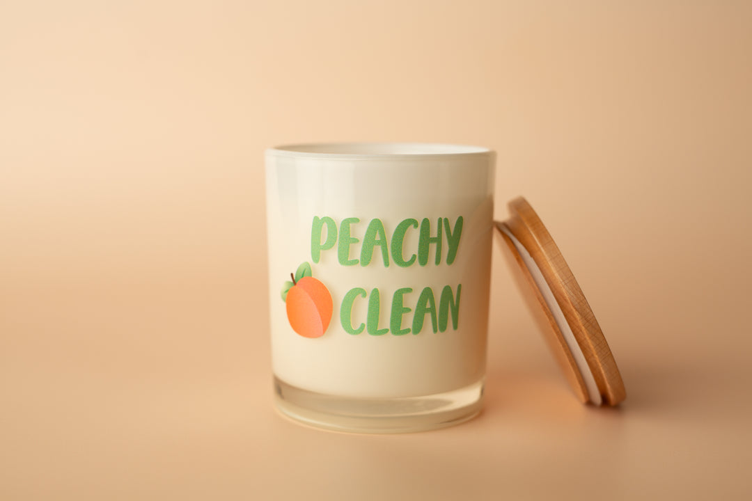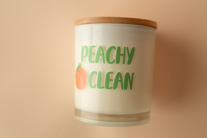 Peachy clean and we're okay with it! This printed candle reads "PEACHY CLEAN" with the cutest peach art. This printed candle is super cute for any bathroom and brings on all the smiles with the vibrant colors incorporated.