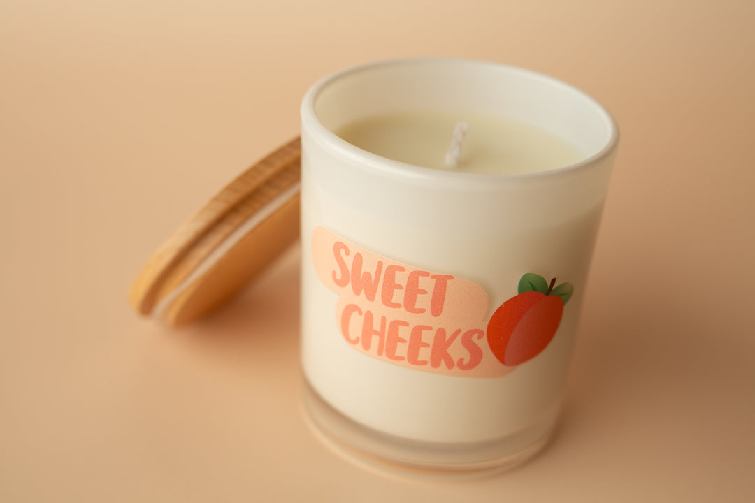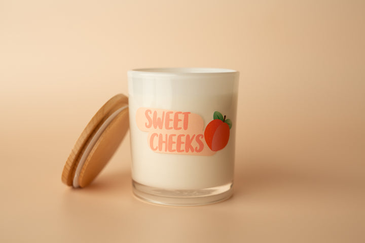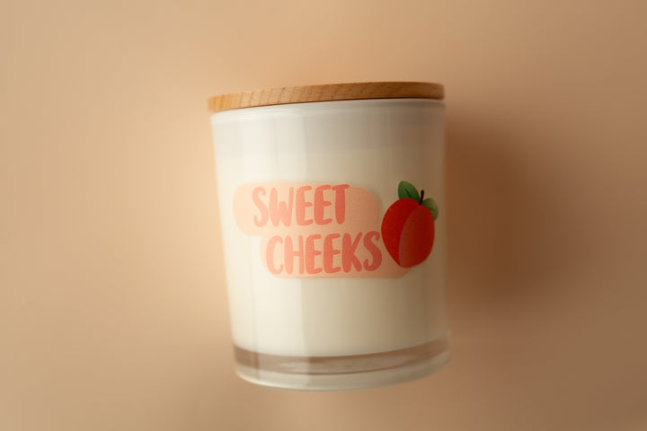Hey, sweet cheeks! Fancy meeting you here. This printed candle reads "SWEET CHEEKS" with the cutest peach art. This printed candle is super cute for any bathroom and brings on all the smiles with the vibrant colors incorporated.
