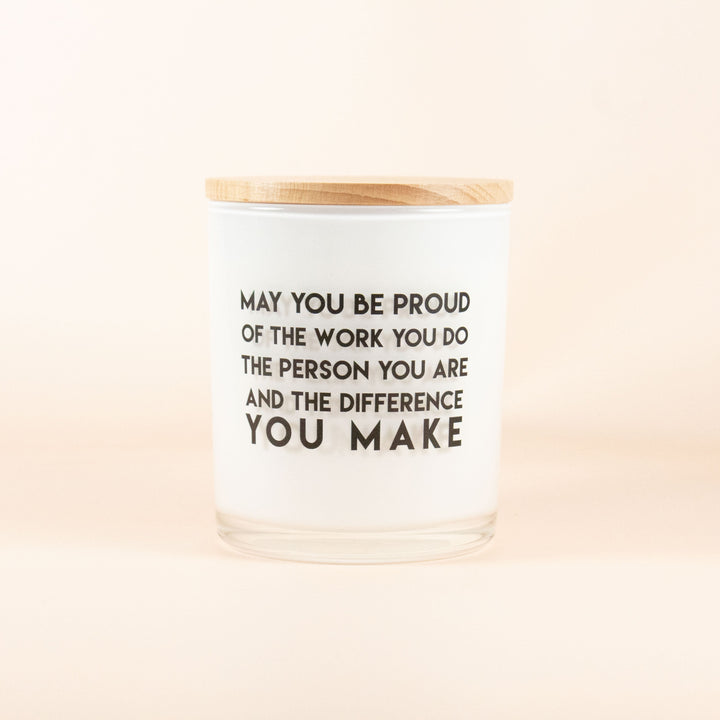 This printed candle reads "May you be proud of the work you do the person you are and the difference you make". This candle is a great gift for the hard workers in your life who strive to make a difference.