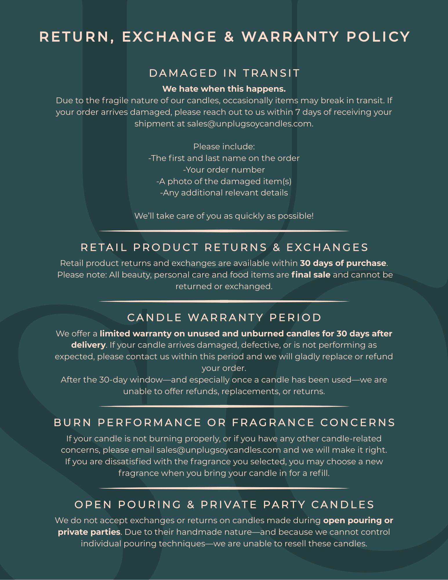 • RETURNS & EXCHANGES